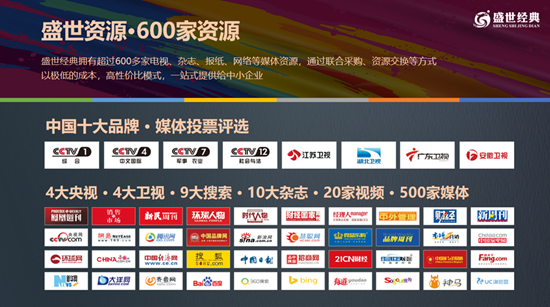 盛世經(jīng)典擁有600余家媒體資源,涵蓋央視、衛(wèi)視、主流雜志、視頻平臺(tái)、搜索引擎等,能通過聚合采購(gòu)與資源互換,以高性價(jià)比模式助力企業(yè)登上權(quán)威媒體舞臺(tái),快速樹立“中國(guó)十大品牌”“行業(yè)標(biāo)桿”等高端形象。