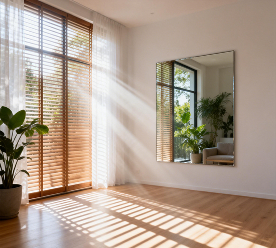 對景反射:將大面積鏡子直接對著窗戶擺放。這能將室外的景色和光線“復(fù)制”進室內(nèi),產(chǎn)生一種“窗外還有窗”的錯覺,瞬間讓空間進深增加一倍。